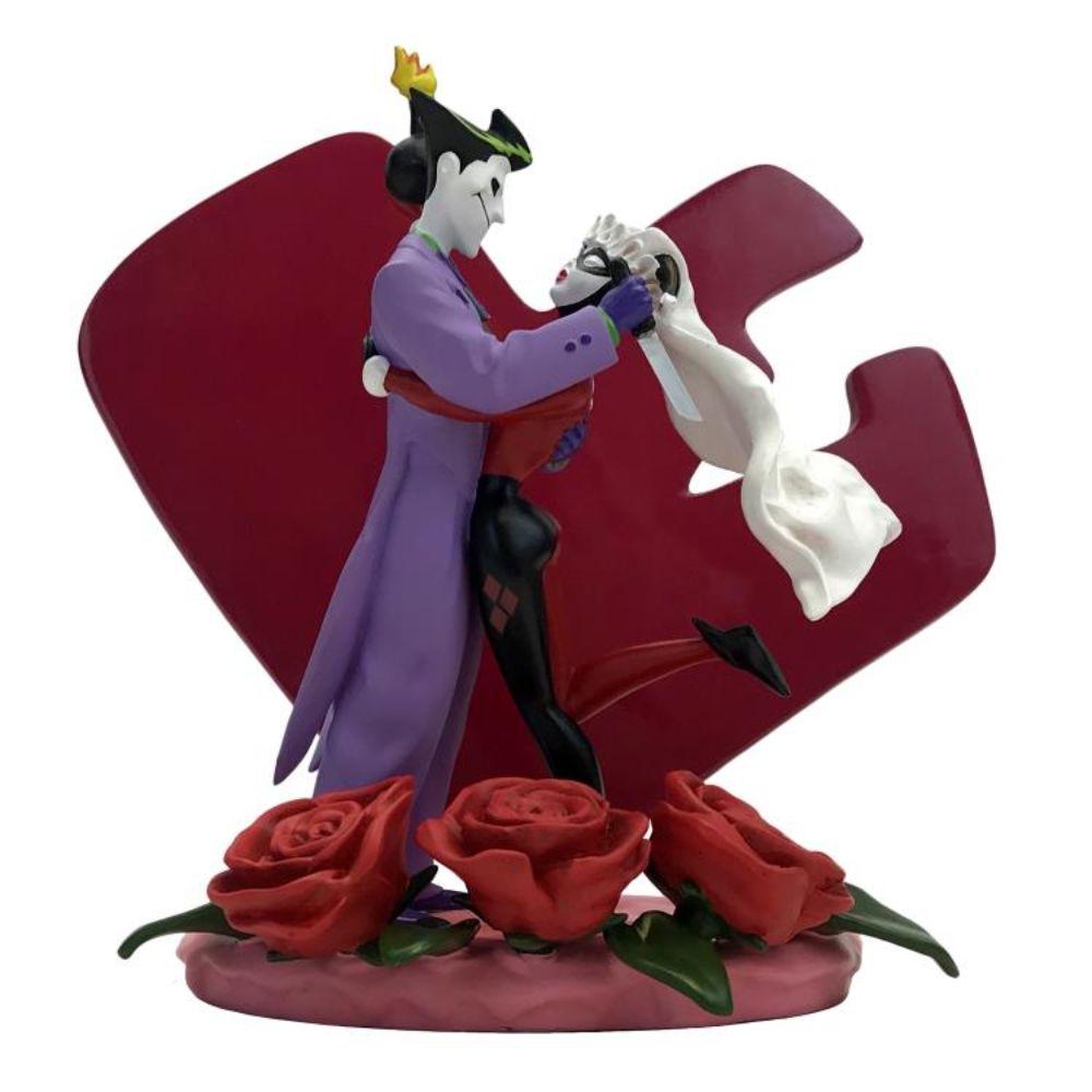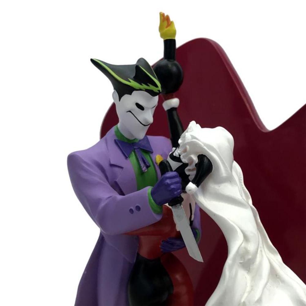 Based on the comic book cover art of the Batman Adventures #16 (Sept 04), "A Wedding to DIE for," this 6 inch tall limited edition statue features a knife wielding Joker and bomb carrying Harley Quinn in a loving embrace, ready to tie the knot and repeat the vow as literally as possible, "til death do us part!"