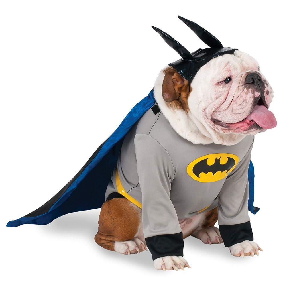 This Batman pet costume includes a gray shirt with Batman symbol, removable cape, and headpiece. Not all costumes fit all pets or breeds without adjustment. Do not select based on breed, consider costume style and animal shape before ordering.