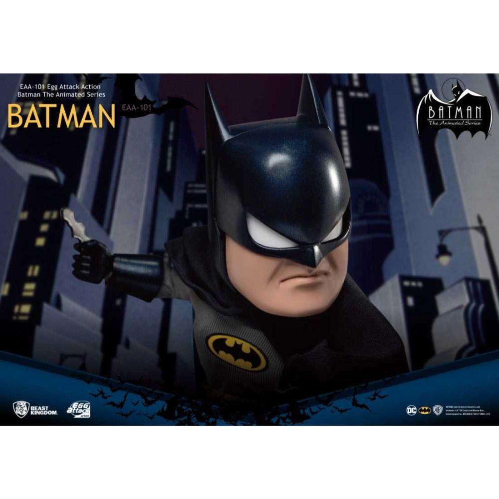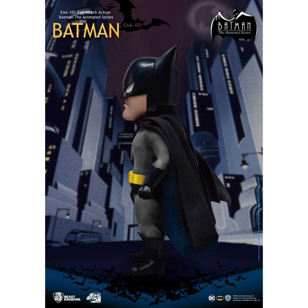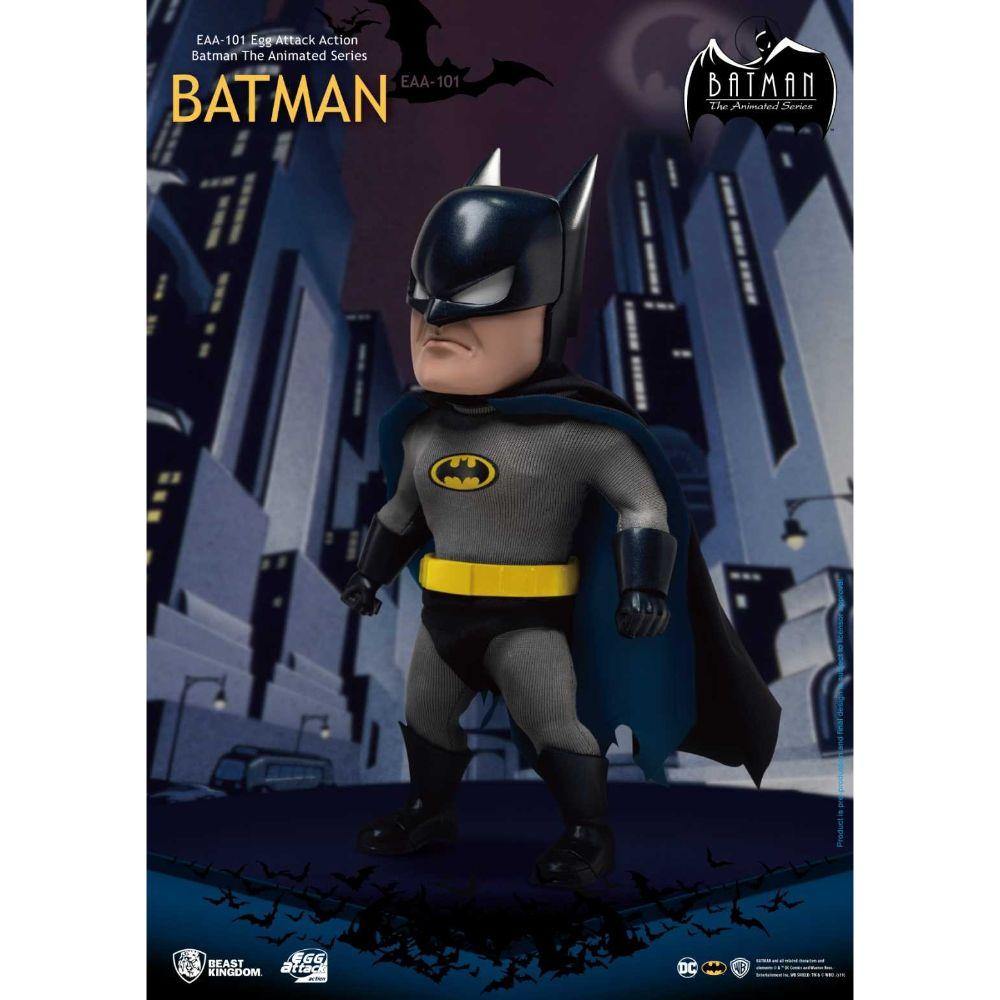 Straight out of the celebrated Batman: The Animated Series comes this faithful reproduction of the Dark Knight. The usage of real cloth for Batman's costume and cape and an illuminated eye function makes this version a collector's item. With full articulation and accessories that include 2 alternate cowl expressions, 3 alternate facial expressions, 7 alternate pairs of hands, 4 batarangs, a grappling gun, and a display stand, this 6-inch action figure is sure to be a standout in any fan's collection.