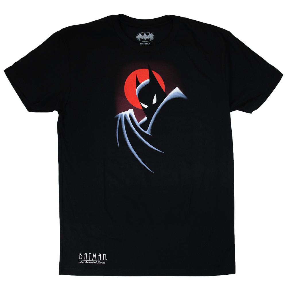 Our exclusive! "I am vengeance! I am the night! I am BATMAN!" Inspired by Kevin Conroy's (Batman) now iconic line spoken during the hallucination scene in the classic Scarecrow episode Nothing to Fear, this t-shirt captures the series' seminal style on the front and I AM THE NIGHT in Dark Deco red on the back. 100% cotton.