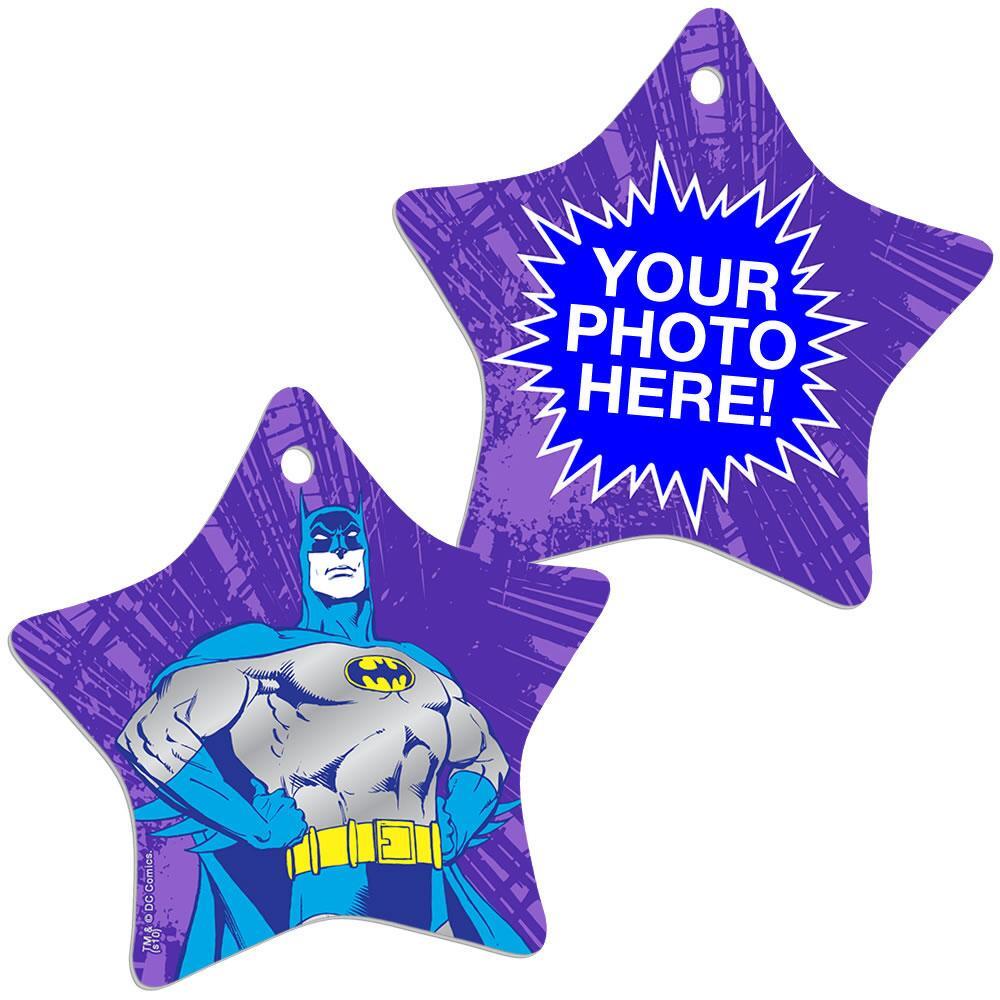 This personalized ceramic ornament features a design of Batman on one side and a spot for a special photo of your own on the other. Just click the "Customize It!" button to create your one-of-a-kind keepsake or gift that will be cherished forever. Measures approximately 3 inches in diameter and hangs from an included delicate gold-colored cord.