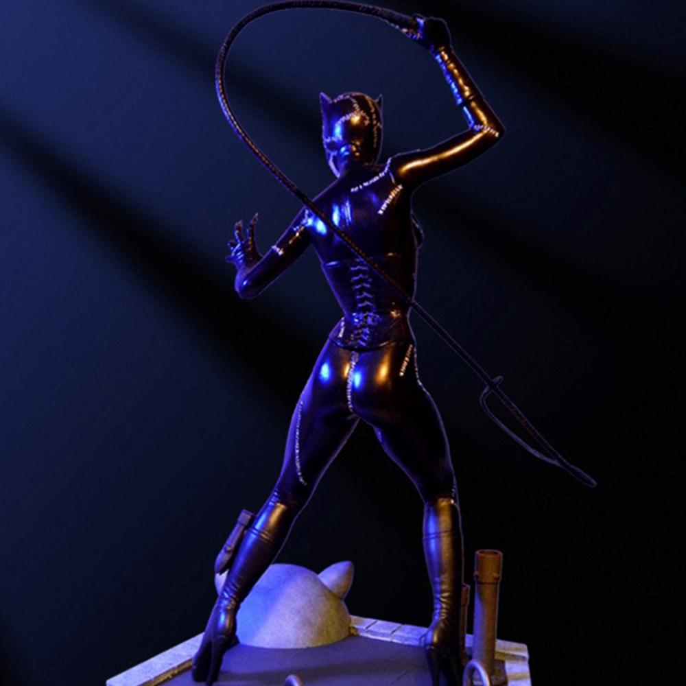 The highly detailed 1:6 scale maquette features a stunning likeness of Michelle Pfeiffer from Batman Returns in her iconic catsuit atop a Shreck's inspired Gotham City base. You'll feel so much yummier (as Miss Kitty knows) with this perfect addition to your Batman collection. Measures approximately 12 x 9 x 16 in. Weighs approximately 9 lbs.