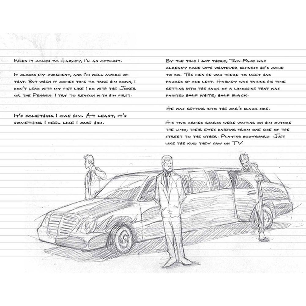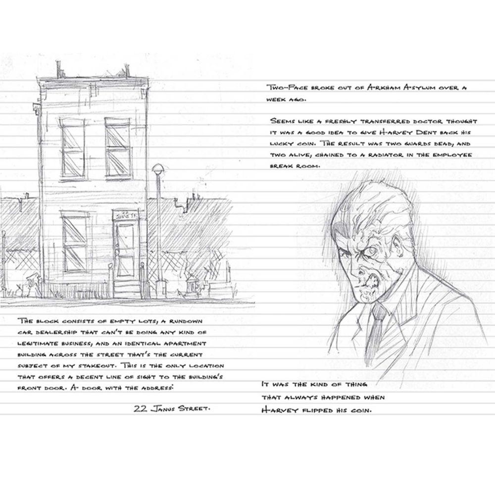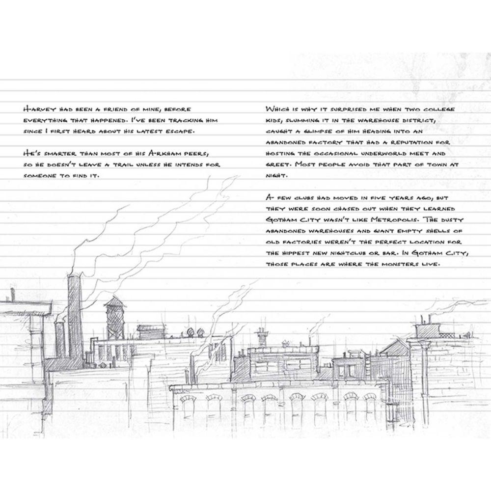 Embroiled in a potentially deadly mission, Batman drops the journal in which he has been jotting down notes on the case. That's where you come in! This ruled journal contains several pages of notes and sketches created by Batman, before giving way to blank ruled pages on which you can jot your own notes. Atmospheric, engrossing, and designed with a dynamic in-universe aesthetic, this journal lets readers feel like part of Batman's world! With sturdy construction and sewn binding, this journal lies flat, and the 192 ruled, acid-free pages of high-quality heavy stock paper take both pen and pencil nicely to invite a flow of inspiration. Includes a ribbon placeholder, elastic closure, and 7.5 x 4.5-inch back pocket, perfect for holding photographs and mementos.