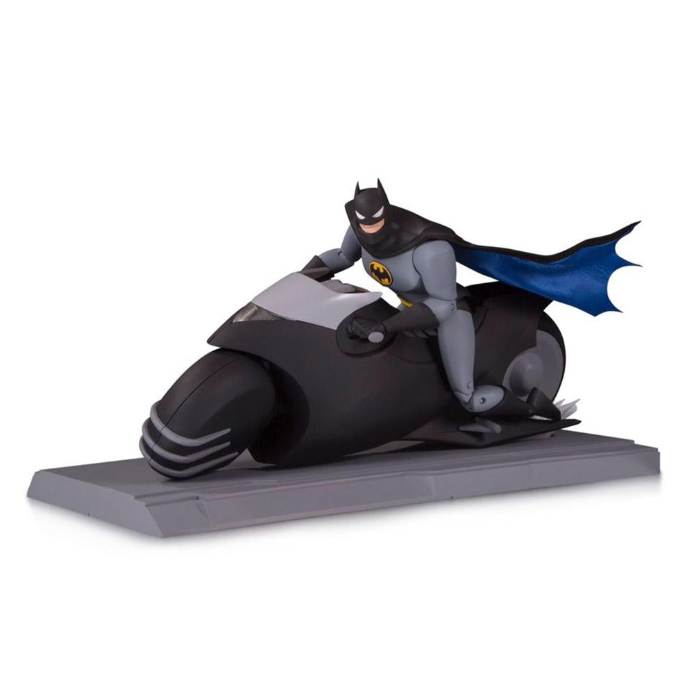 Gotham is a dense, sprawling city with tall buildings, busy highways, and dark alleys. In his quest to protect the city, Batman sometimes he needs a vehicle which can go where the Batmobile cannot. Enter the Batcycle. Complete with an exclusive 6" tall Batman action figure which features 27 points of articulation that allow it to "ride" the Batcycle, poseable cape, and interchangeable helmet head, this 9.25" long Batcycle includes a variety of light-up features and two free-spinning wheels that enable the bike to turn. The double-sided display base allows you to "park" the Batcycle in the Batcave or in the streets of Gotham City.