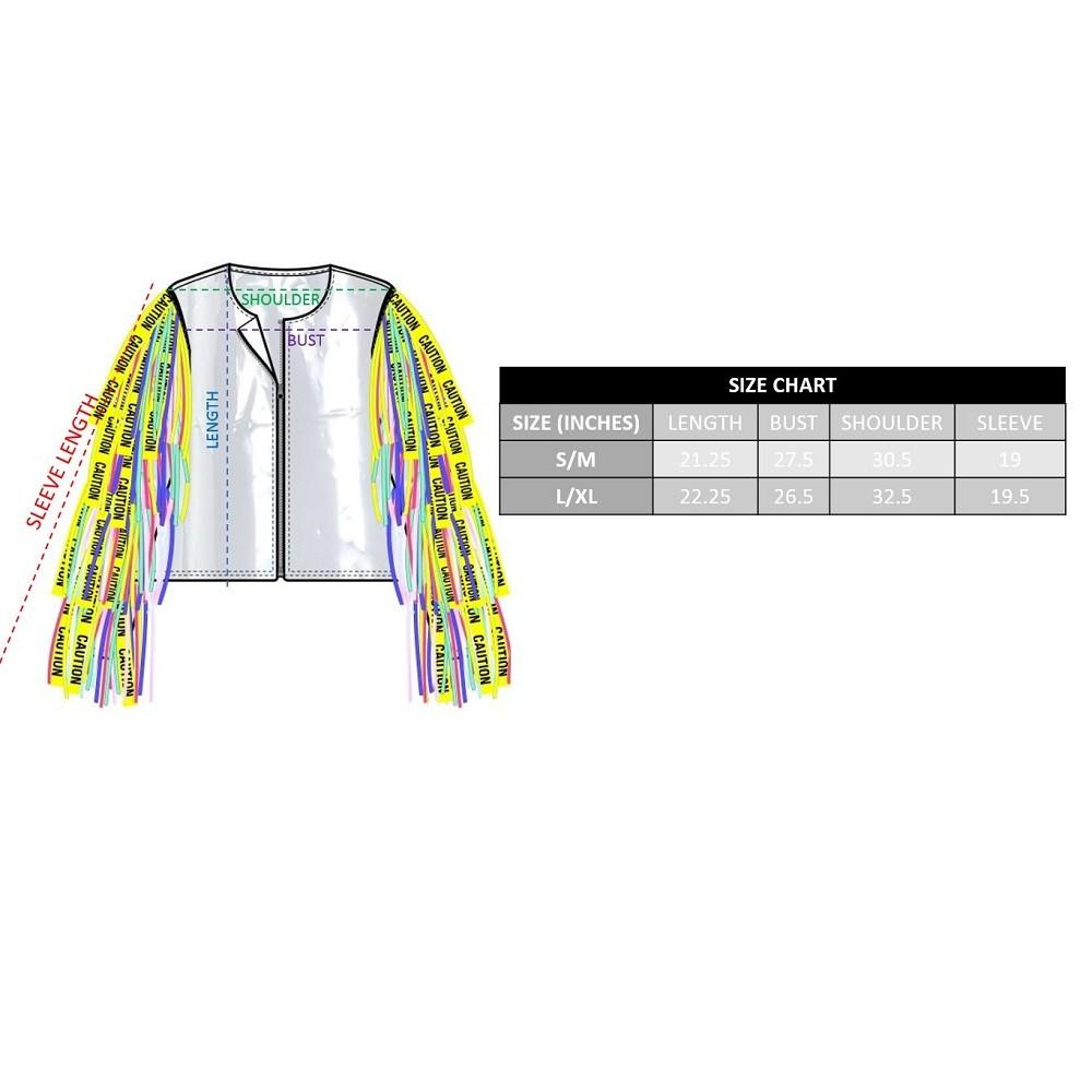 Birds of Prey (and the Fantabulous Emancipation of One Harley Quinn) is a tale told by Harley herself, as only Harley can tell it, and this jacket inspired by Harley herself from the movie is meant you for you to wear it. The fringe tinsel sleeves, and satin ribbon caution tapes gives this juniors fit jacket an authentic look, making it perfect for creating a true Harley Quinn cosplay outfit.