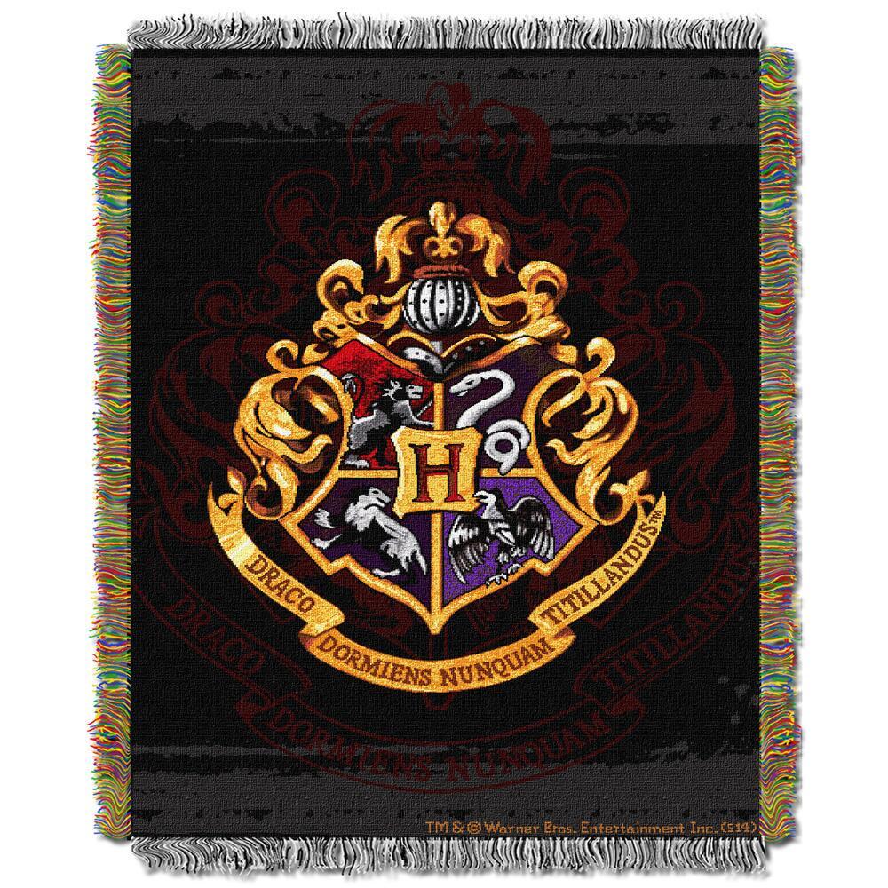Bring a little part of the Wizarding World of Harry Potter into your home. Featuring a detailed Hogwarts crest design and embroidered with gold thread throughout and decorative fringes around all edges, this exclusive woven throw blanket will transform any living room into a magical dwelling. 55% polyester/45% acrylic. Measures 48" W x 60" L