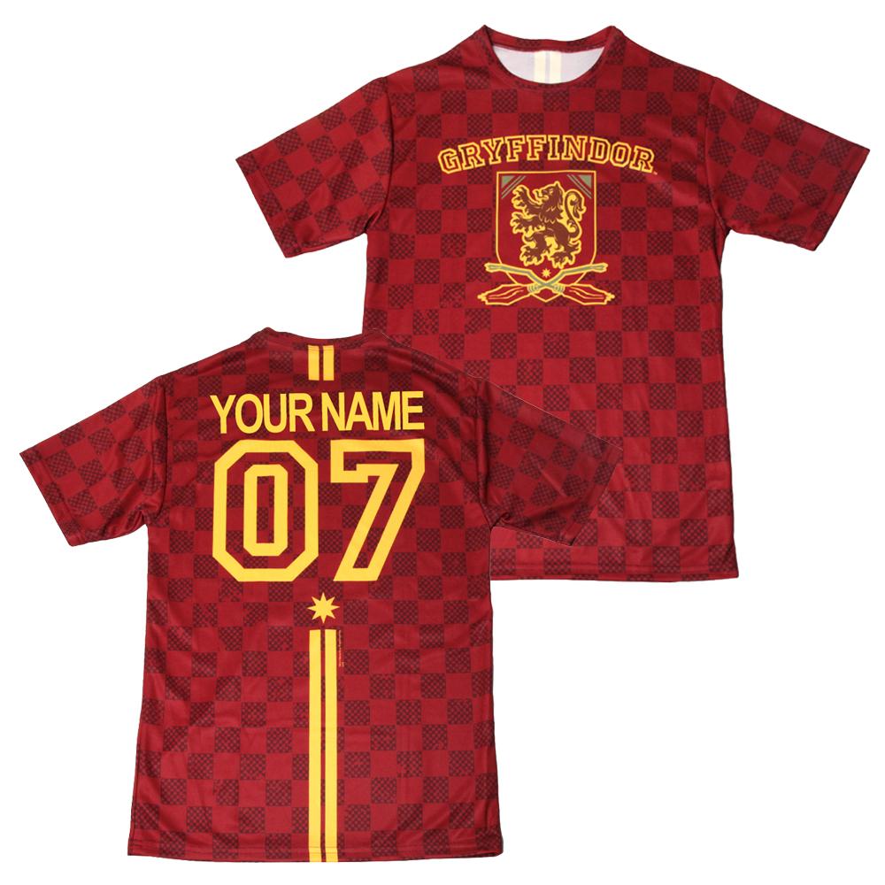 This sublimated t-shirt features a dynamic checkered pattern of the Gryffindor colors. The front of the shirt shows the Gryffindor name and crest. The back of the shirt has the number 01 or 07, along with the name that you provide. Whether you're a Seeker, a Keeper, a Beater, or a Chaser, we've got a t-shirt for you!