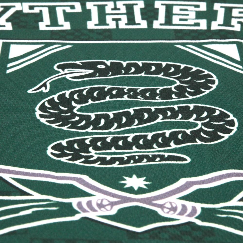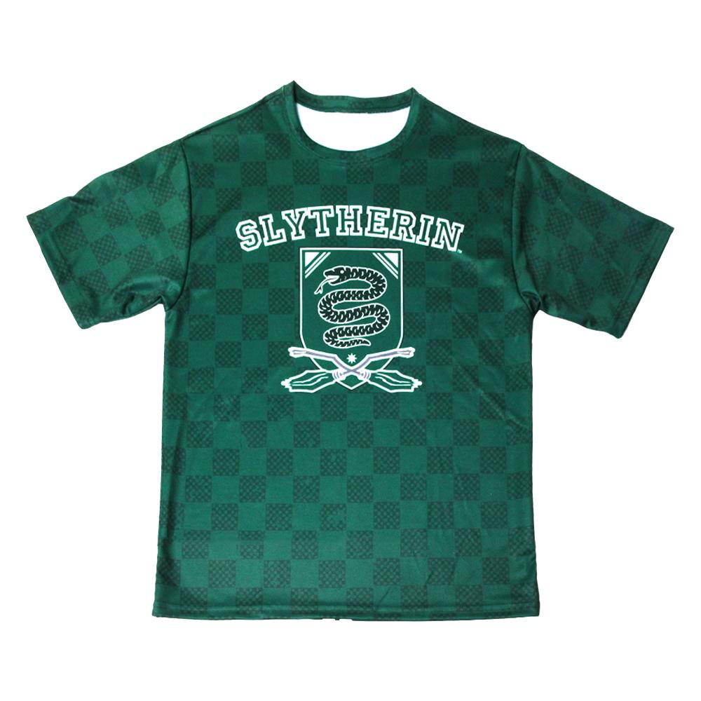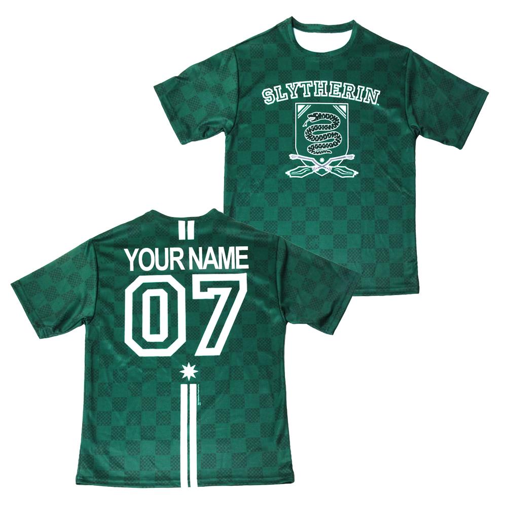 This sublimated t-shirt features a dynamic checkered pattern of the Slytherin colors. The front of the shirt shows the Slytherin name and crest. The back of the shirt has the number 01 or 07, along with the name that you provide. Whether you're a Seeker, a Keeper, a Beater, or a Chaser, we've got a t-shirt for you!