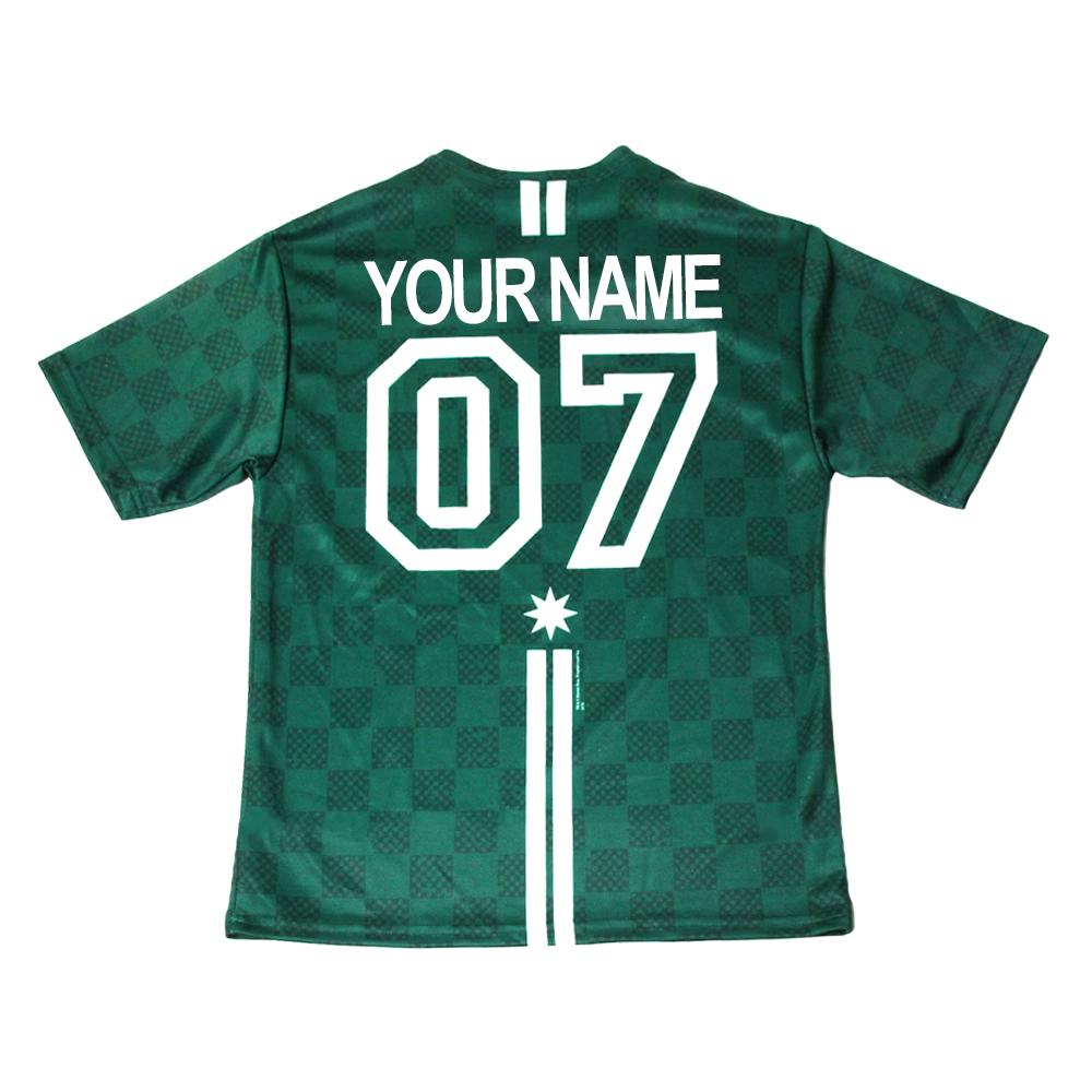 First, choose the size of the shirt and the number that you'd like to be printed on the back of the shirt by making your selection from the Select Style options. Then enter your name into the "Name on Jersey" box. Double check the spelling of your name, and then click or touch the Add to Cart button. Check out as usual to complete your purchase, and you're all set!