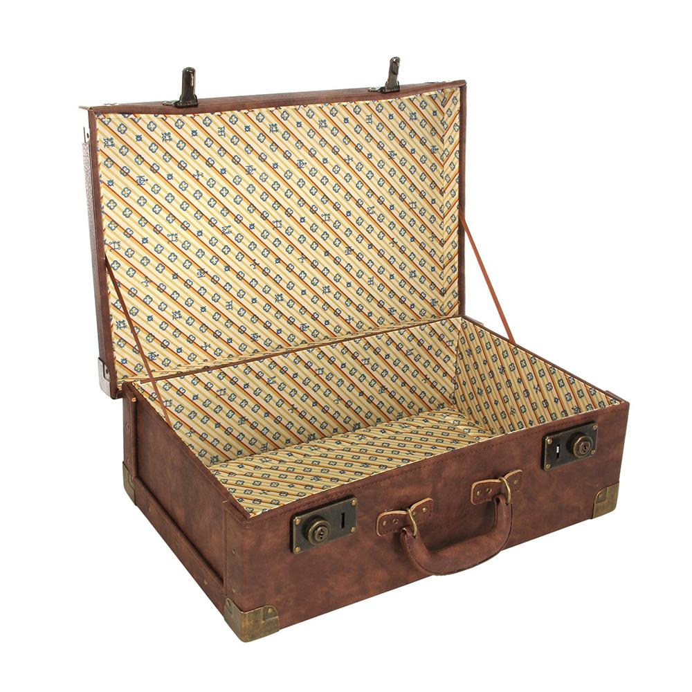 Carry magical beasts of all shapes and sizes like a Niffler or a Bowtruckle with the Newt Scamander briefcase. Dark, textured faux leather is reinforced with fold-over metal cap corners and embossed with Newt Scamander's initials. Brushed brass outer tab locks and smooth, custom-printed silken lining fabric add period details to this 1920s style case.