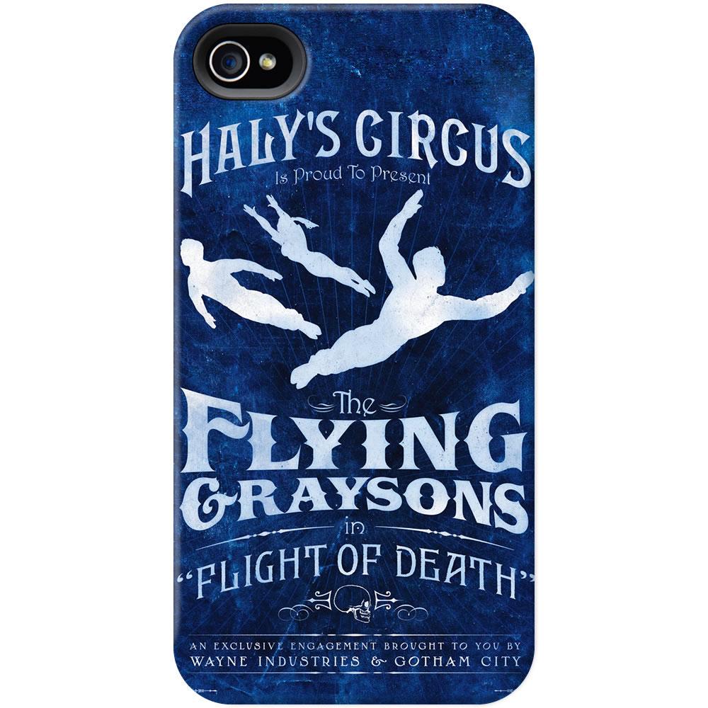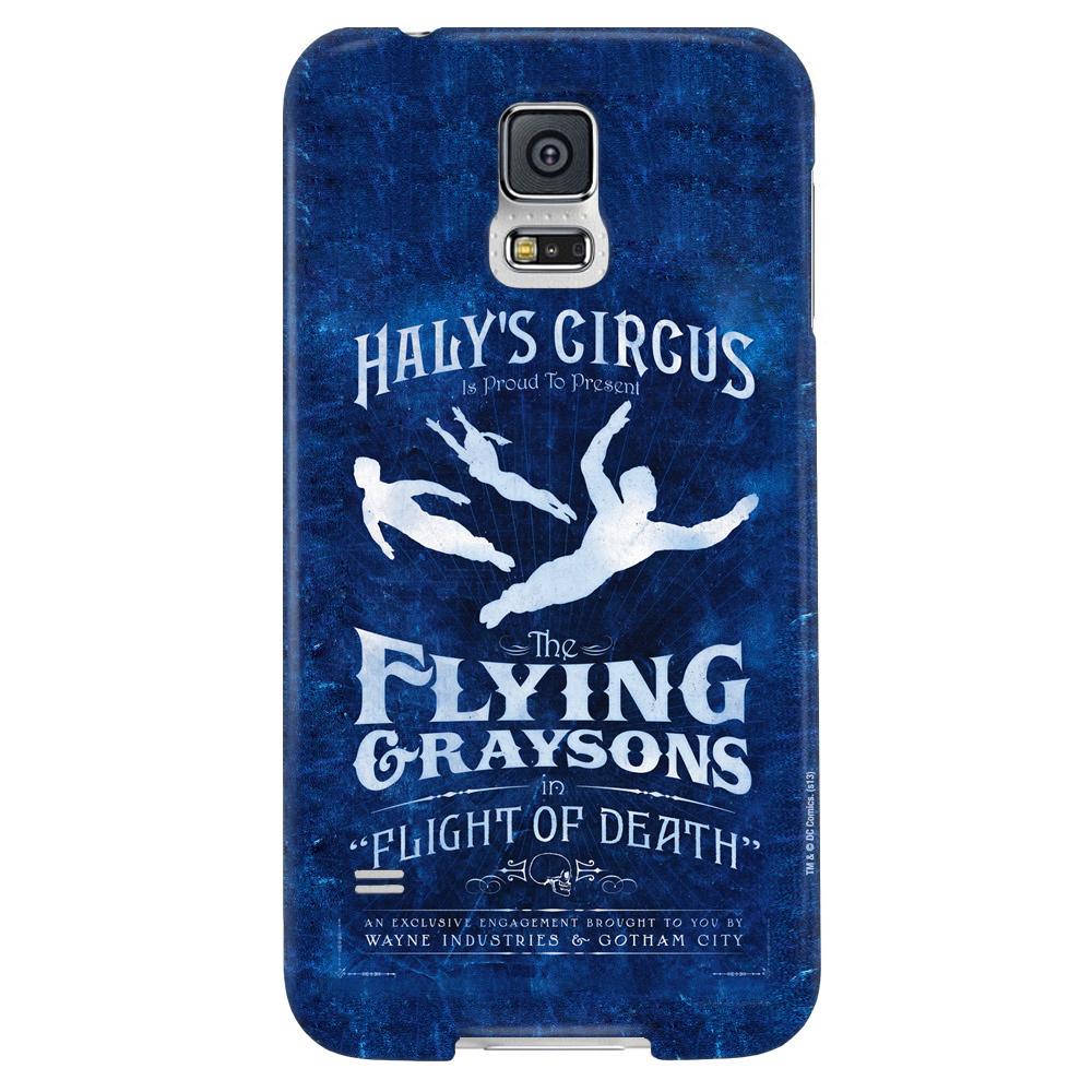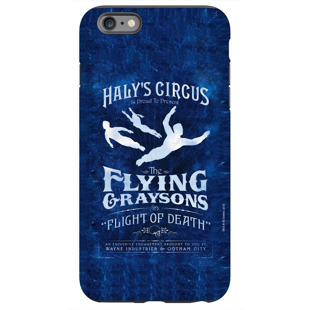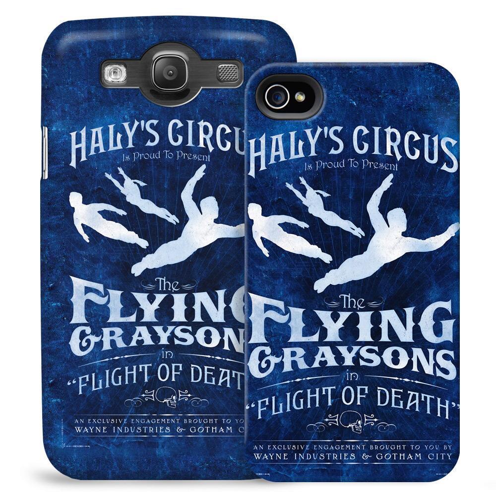This phone case features a design for Haly's Circus promoting The Flying Graysons, performing their act "Flight of Death," which is an exclusive engagement brought to you by Wayne Industries and Gotham City. The ultra-thin firm outer shell fully covers the back and sides of your phone while giving you complete access to all ports and functions. A thin padded silicone sleeve (except on the Samsung Galaxy S5 and the Samsung Galaxy S6) sits between the phone and the case, giving your phone an extra level of protection.
