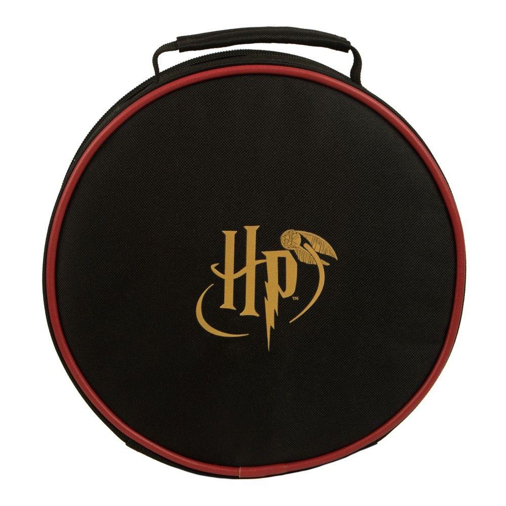 Pack your meal in this insulated lunchbox as you board the train to Hogwarts. Features the Platform 9 3/4 logo on one side and the Harry Potter logo on the other. The insulated interior zipper closure traps the heat or cold inside to keep everything fresh as you use the top handle for easy carrying. 9.5." H x 9.5" W x 3.5" D