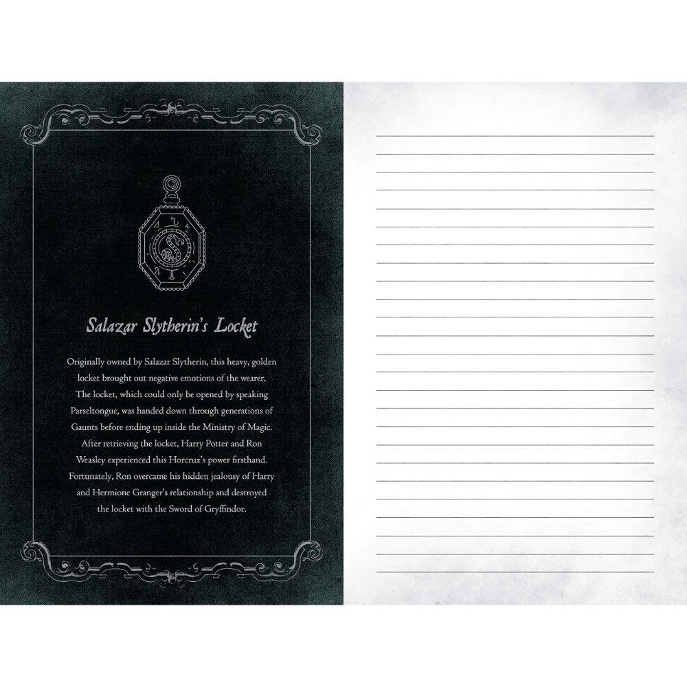 Flexibound replica of Tom Riddle's diary featuring Dark Arts quotes, descriptions of the 7 horcruxes, and photos and illustrations throughout, plus plenty of space for writing. Also includes a reproduction of the messages between Harry Potter and Tom Riddle, as seen in Harry Potter and the Chamber of Secrets. The diary is 5-1/4 x 8" and 176-pages.