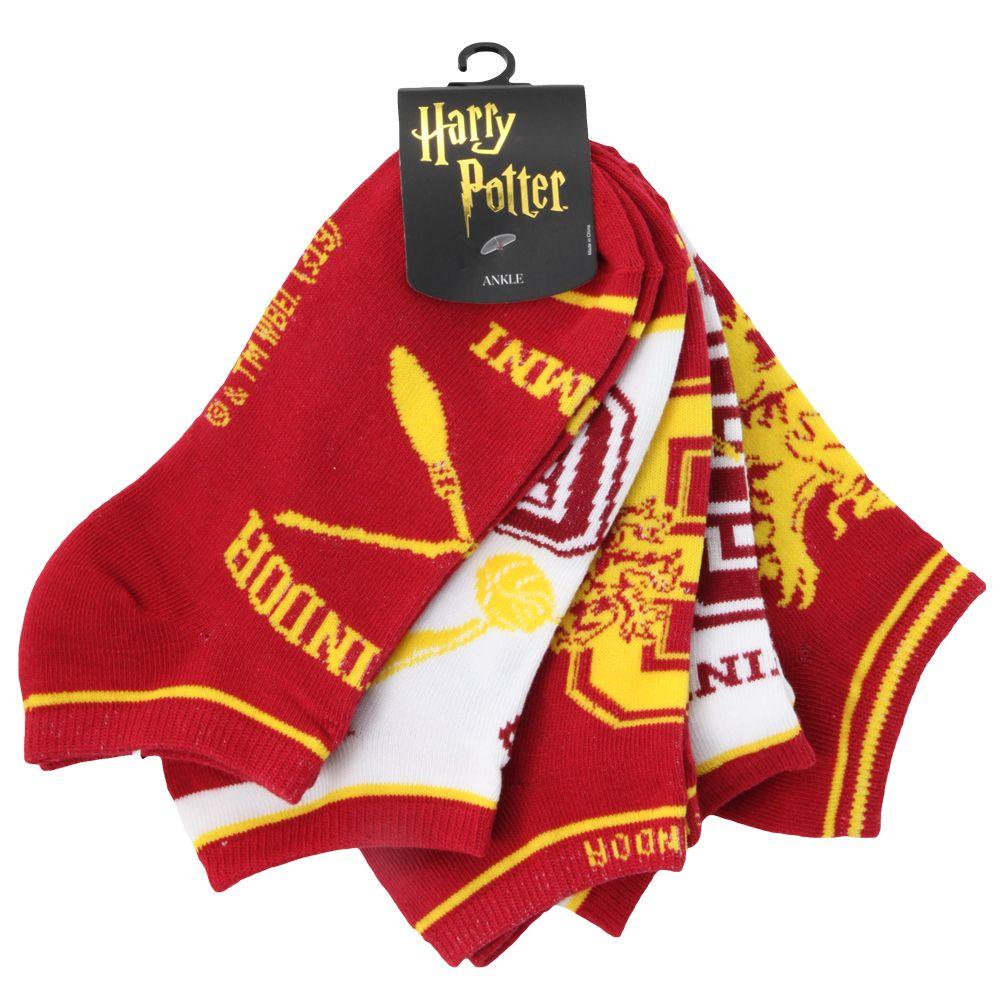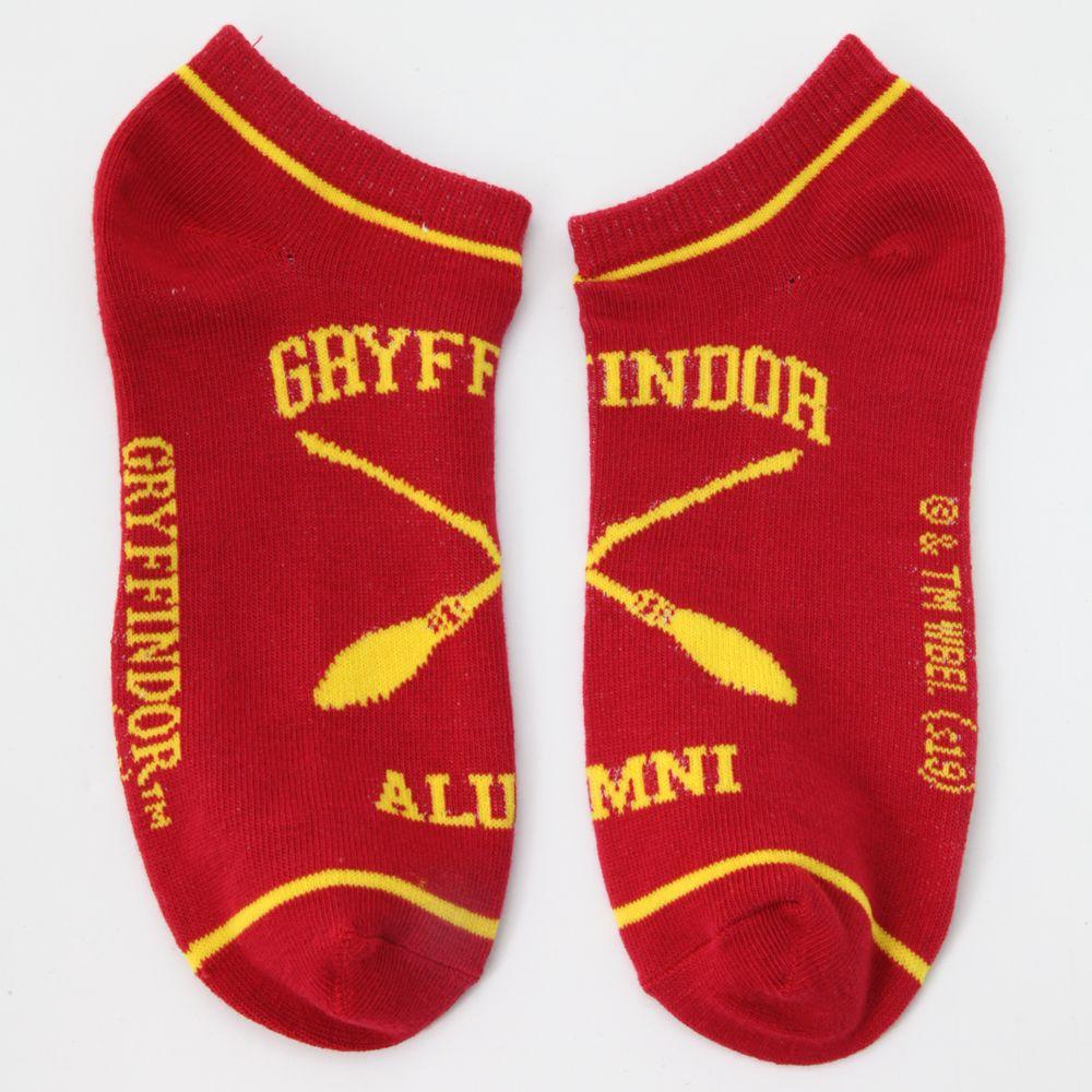 This set of five pairs of Gryffindor juniors ankle socks has individual prints inspired by the courageous, brave, and determined wizards at Hogwarts. 98% polyester, 2% spandex. Sock size 9-11.