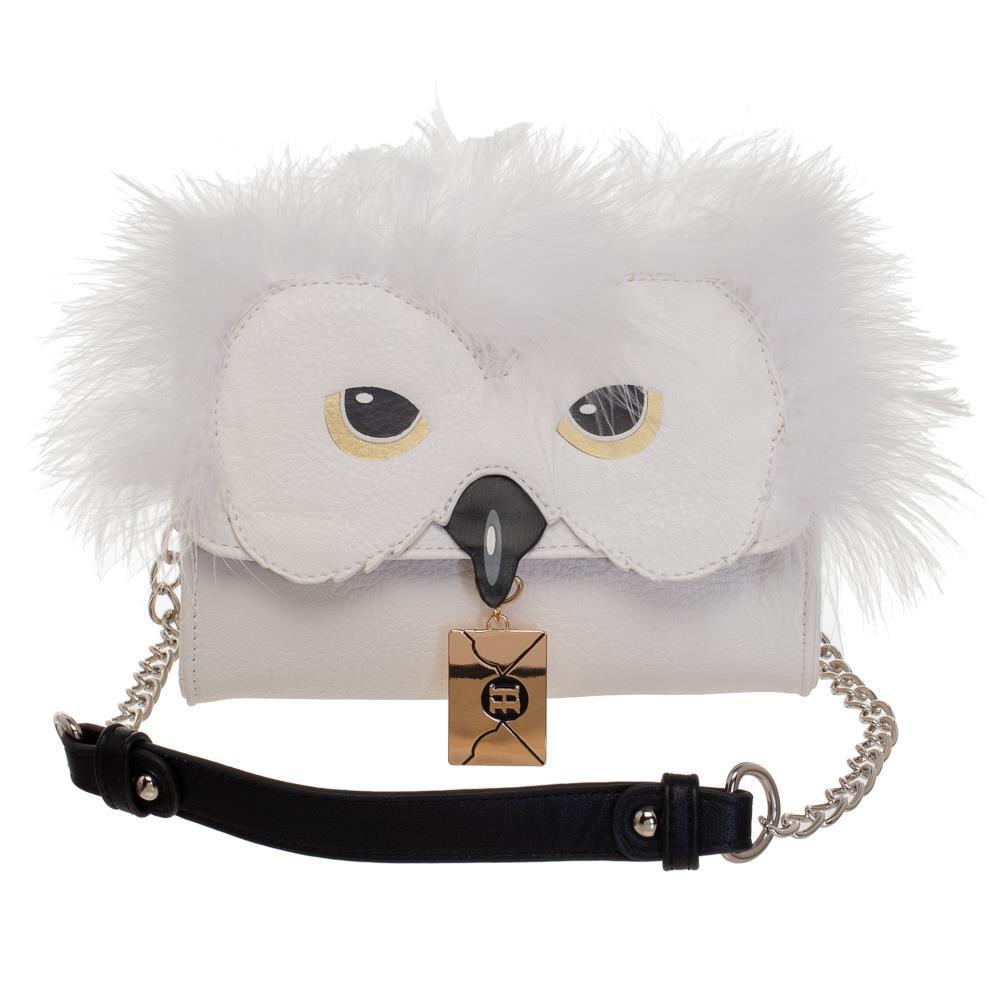 This crossbody handbag, which resembles Hedwig, is perfect for keeping all your wizarding supplies close by. Detailed with faux fur, you might forget that it's not actually Hedwig attached to you! Features a metal Hogwarts acceptance letter charm. Come with chain strap with leather addition for comfort. 7.5"W X 6"H X 3"D