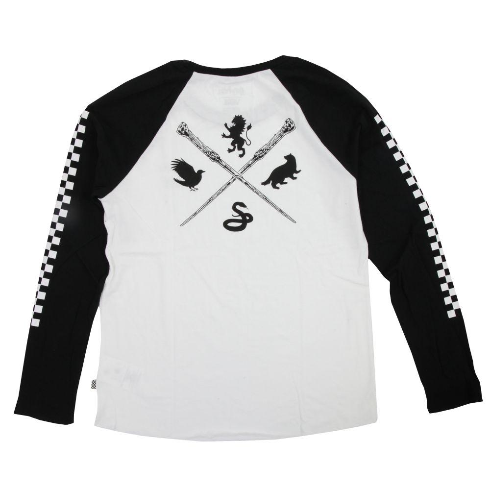 This season, Vans and Harry Potter have conjured up a magical collection for witches, wizards, and muggles alike. Featuring screen prints at the left chest, sleeves, and back, the Vans x Harry Potter Hogwarts long-sleeve raglan t-shirt is made with 100% cotton jersey and has long sleeves and a boyfriend fit. No matter which of the Hogwarts houses the Sorting Hat decides upon -- be it Gryffindor, Slytherin, Ravenclaw, or Hufflepuff -- you can display your loyalty in genuine "Off The Wall" style.