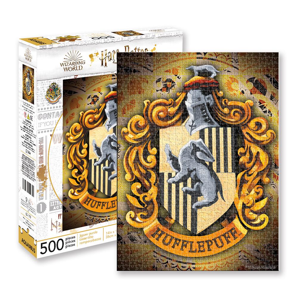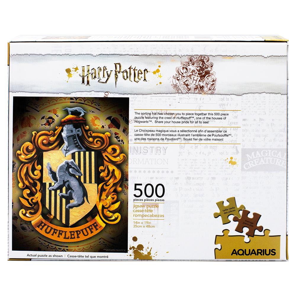 The 500-piece jigsaw puzzle measures approximately 14" x 19". The box features an image of the finished puzzle to help you piece together your favorite house crest.