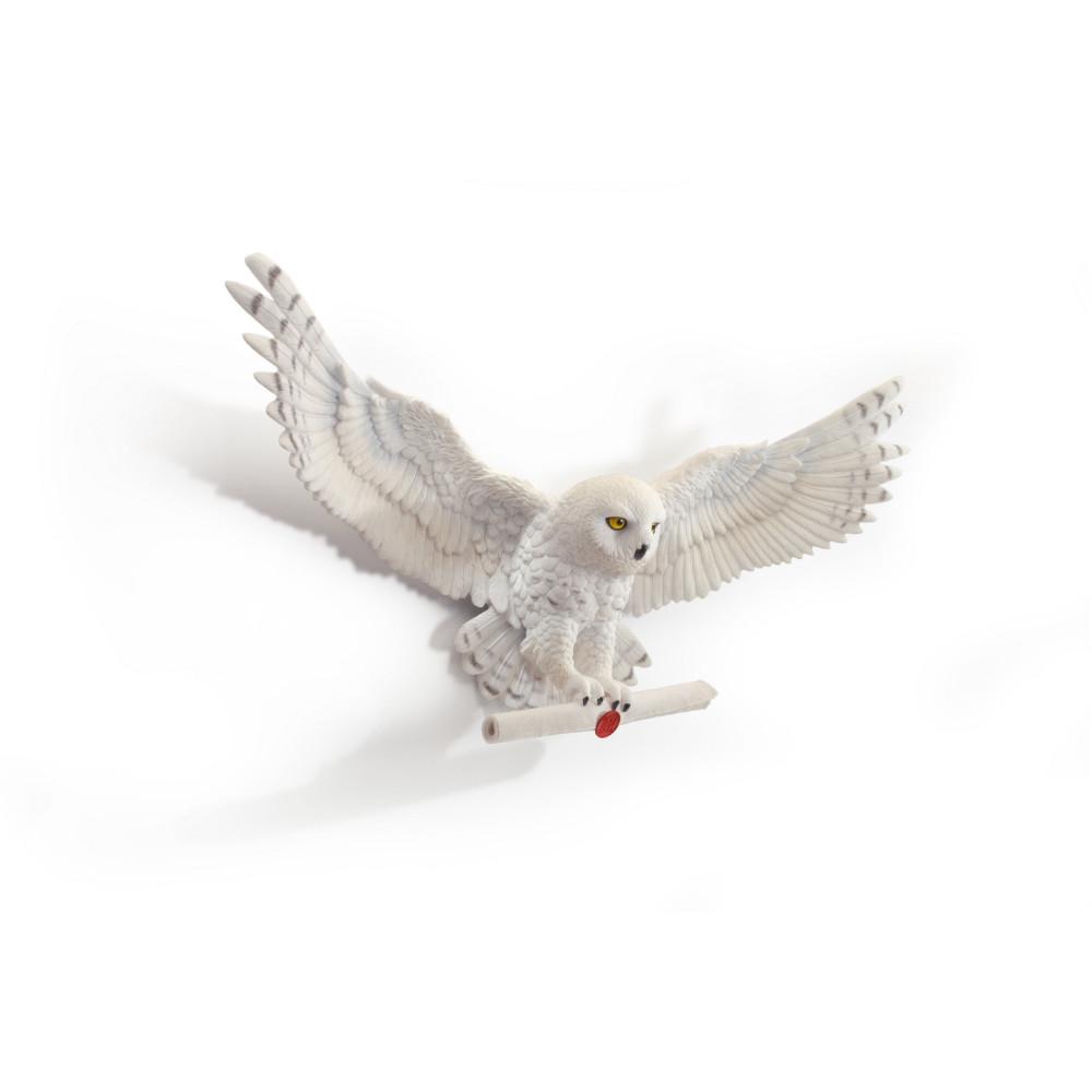 This detailed sculpted wall decor features Hedwig carrying a Hogwarts sealed scroll. Measures approximately 18 inches in length.