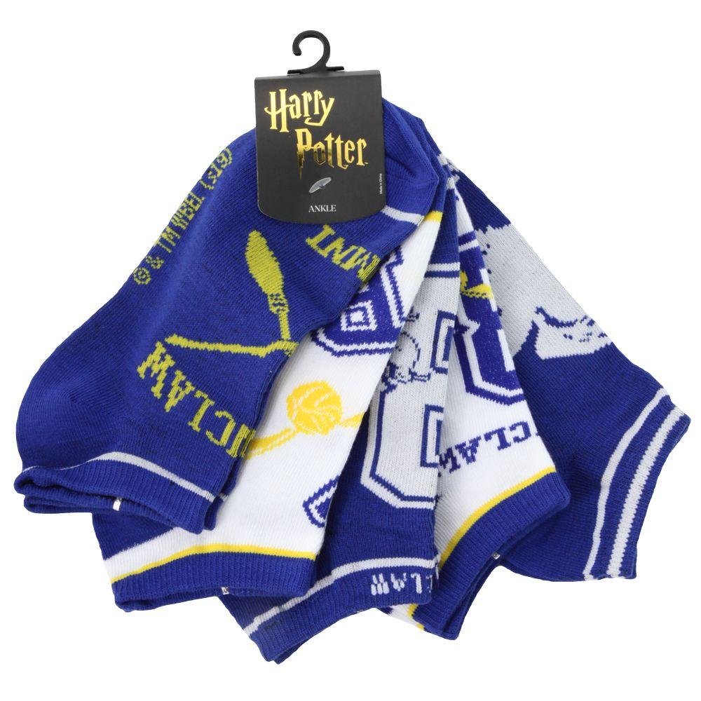 This set of five pairs of Ravenclaw juniors ankle socks has individual prints inspired by the witty and wise wizards at Hogwarts. 98% polyester, 2% spandex. Sock size 9-11.