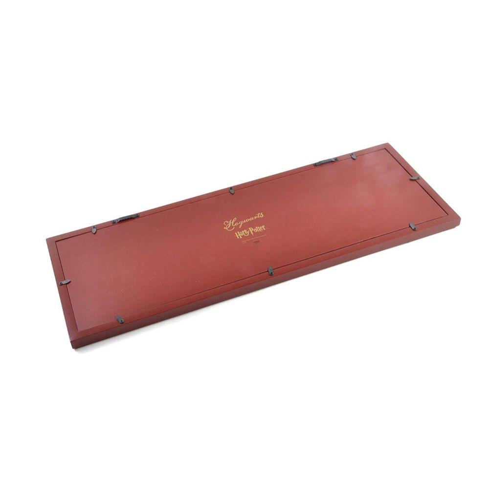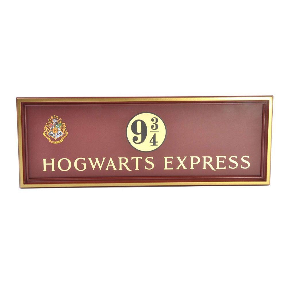 A replica of the Platform 9 3/4 sign that hangs on the platform alongside the Hogwarts Express. Wood display. Measures 22 x 8 inches.