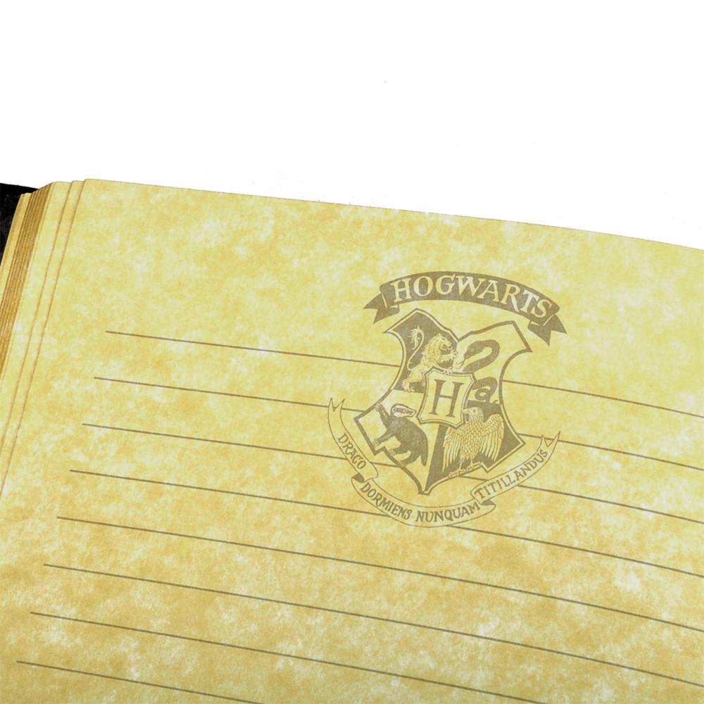 Studying magic at Hogwarts is sure to be one of the most adventurous times in your life, and you'll want to keep a detailed record of your escapades. What better way than with this beautiful blue hardbound journal from the Noble Collection? The handsome design features gilded page edges and a diecast metal hand-enameled emblem, as well as a ribbon bookmark. You can be sure that your magical musings will stand the test of time and look great on your bookshelf. Measures approximately 9.75" by 6.75".