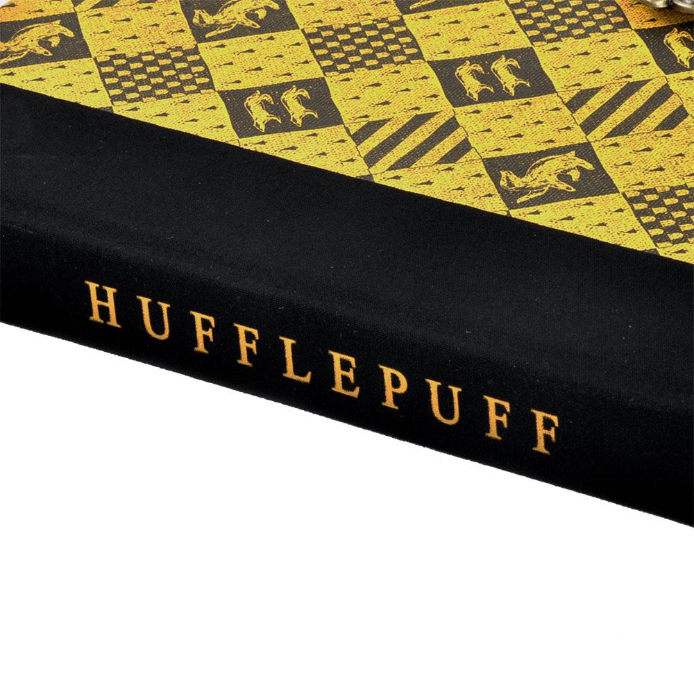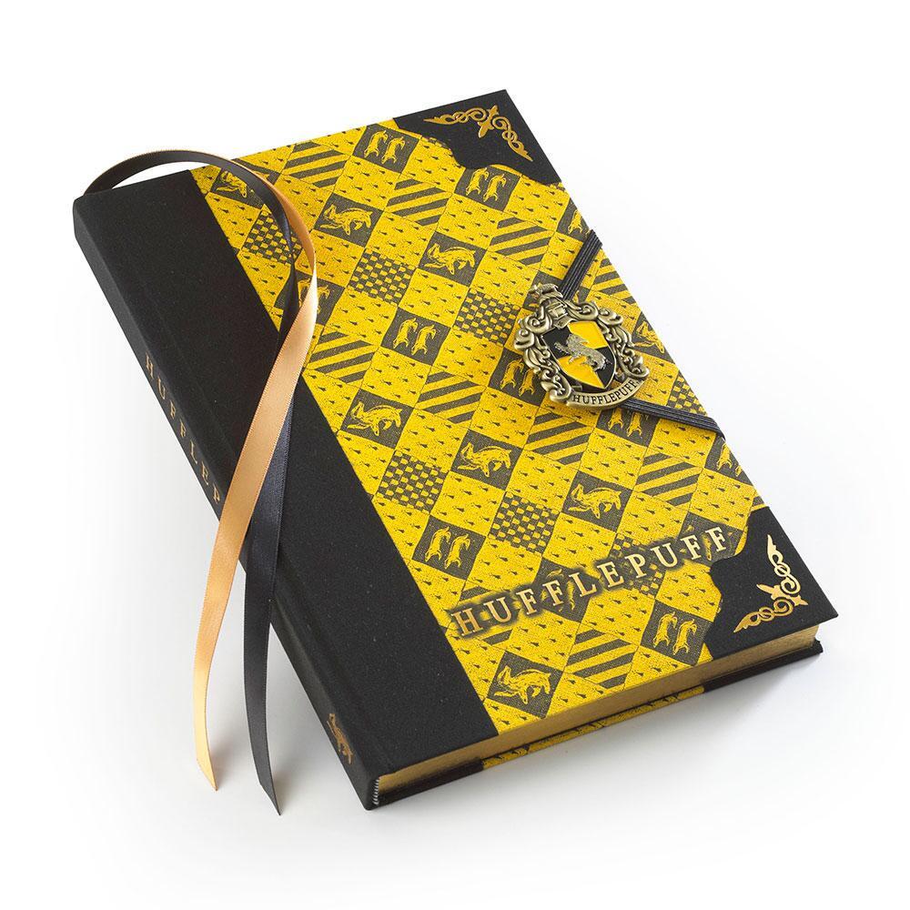 Studying magic at Hogwarts is sure to be one of the most adventurous times in your life, and you'll want to keep a detailed record of your escapades. What better way than with this beautiful hardbound journal from the Noble Collection? The handsome yellow design is perfect for the stalwart students of Hufflepuff House and features gilded page edges and a diecast metal hand-enameled emblem, as well as a ribbon bookmark. You can be sure that your magical musings will stand the test of time and look great on your bookshelf. Measures approximately 9.75" by 6.75".