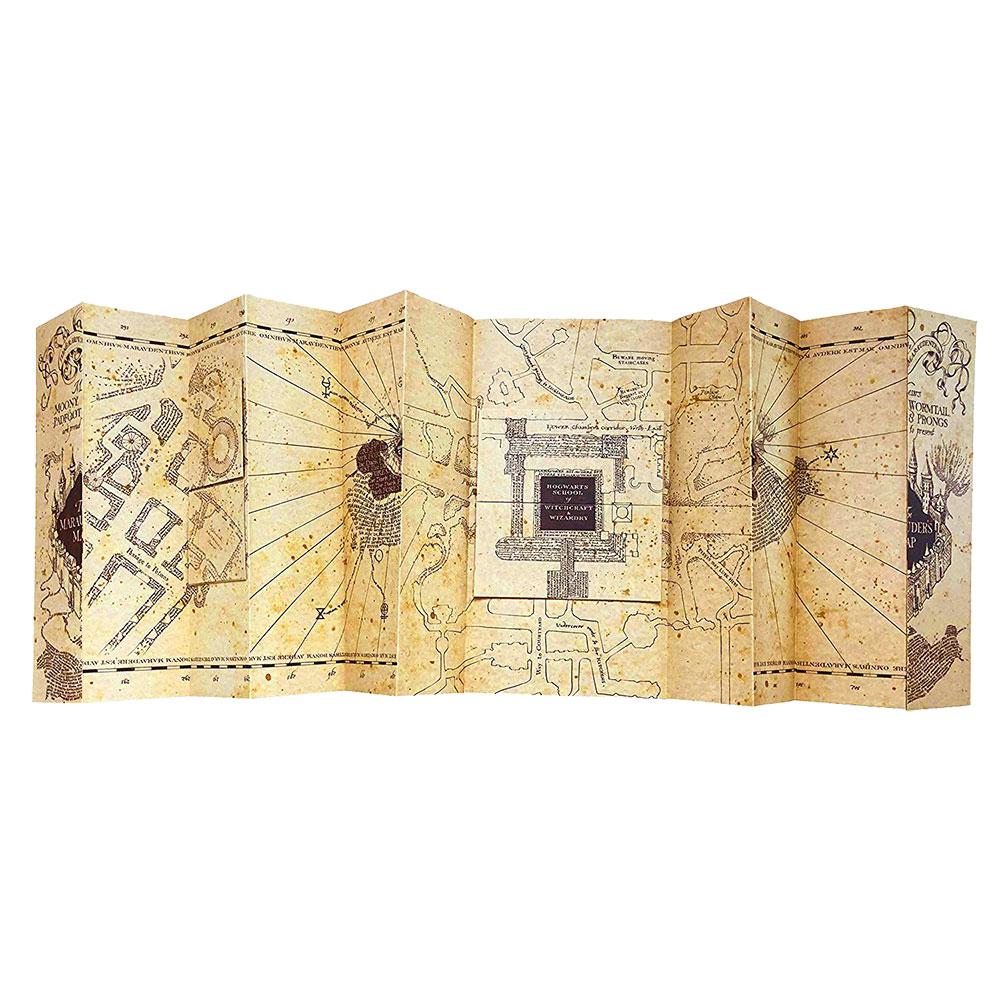 A detailed full size Marauder's Map replica printed on parchment paper. Measures 15.5 x 72 inches open, folds to 15.5 x 8.25 inches.