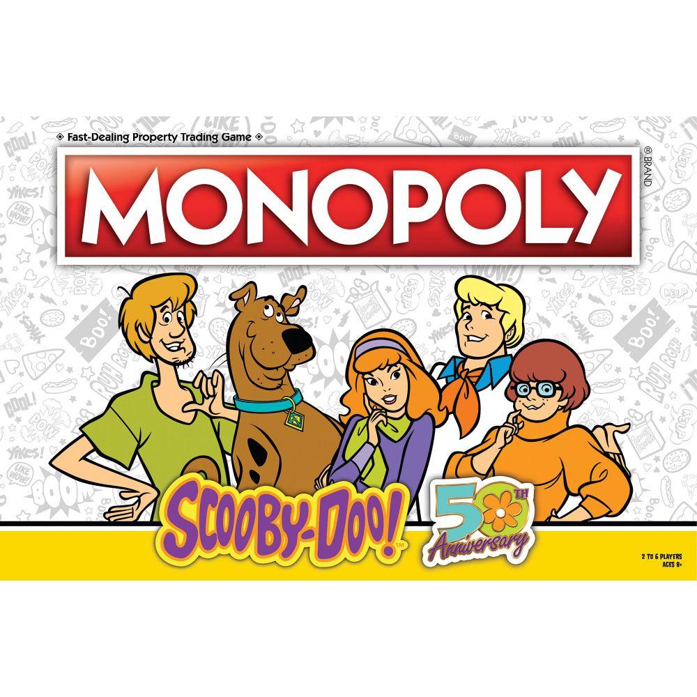 Join Scooby-Doo and the gang as you buy, sell, and trade monstrous locations from Scooby's world in MONOPOLY: Scooby-Doo 50th Anniversary Edition! Bring your favorite memory of Scooby-Doo! to life with this custom Monopoly game featuring classic artwork from the original cartoon and your favorite characters. Includes collectable tokens and custom Monopoly money along with Community Chest & Chance cards renamed Ruh-Roh and Zoinks!