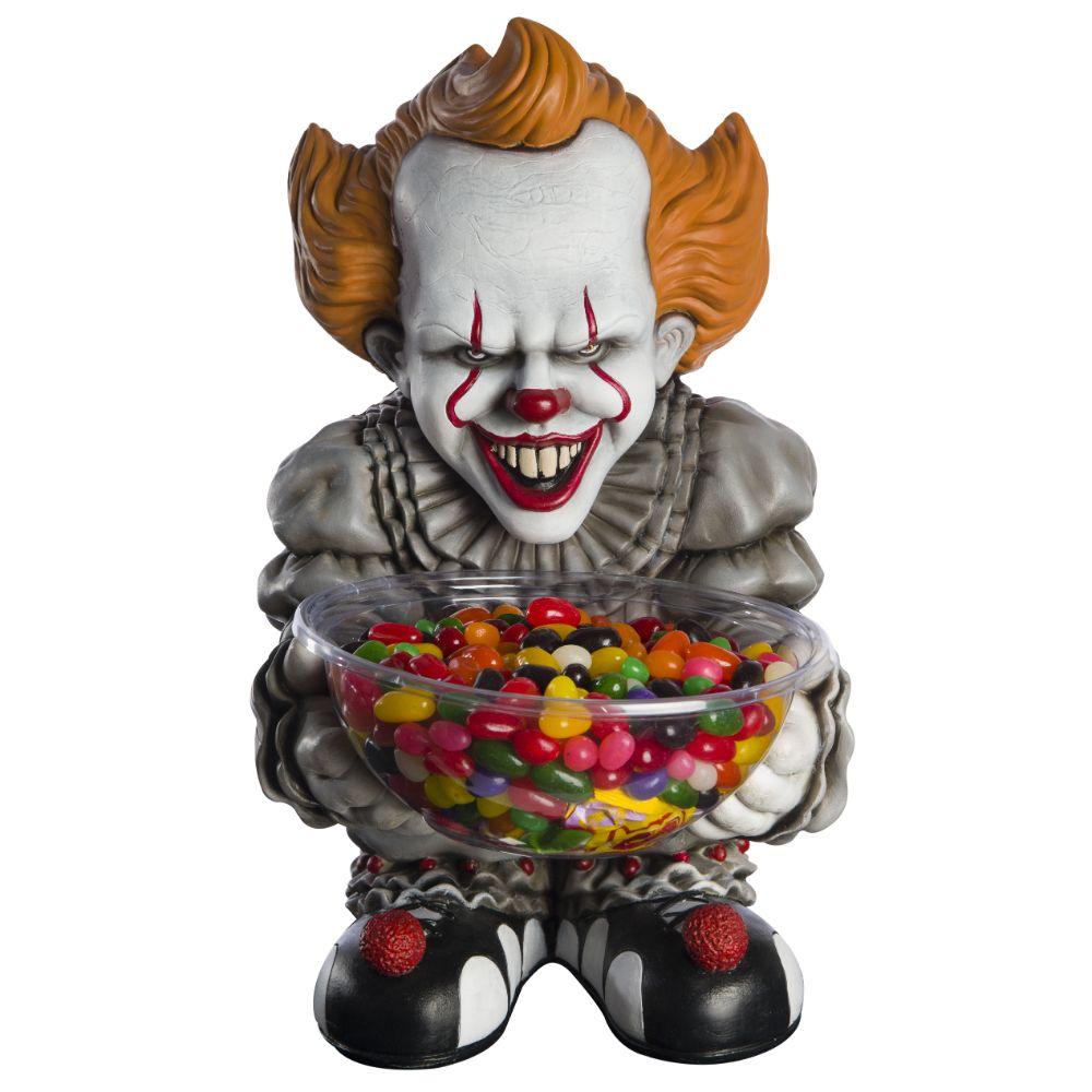 Add personality to your home, office, or party with this Pennywise candy bowl holder. Based on the IT movie, this lightweight injection molded panted Pennywise figure crafted from heavy duty foam features a menacing grin, stands measuring approximately 18 inches tall; features a hollow back designed to stand flush against a wall and includes lightweight clear plastic removable bowl (9.75" across and 3.5" deep). Bowl is not just for candy, store business cards, keys, coins, pens, party favors, and more. Great for any Stephen King reader, IT movie fan, or horror collector; and fun for all year long. Plastic. Candy not included.