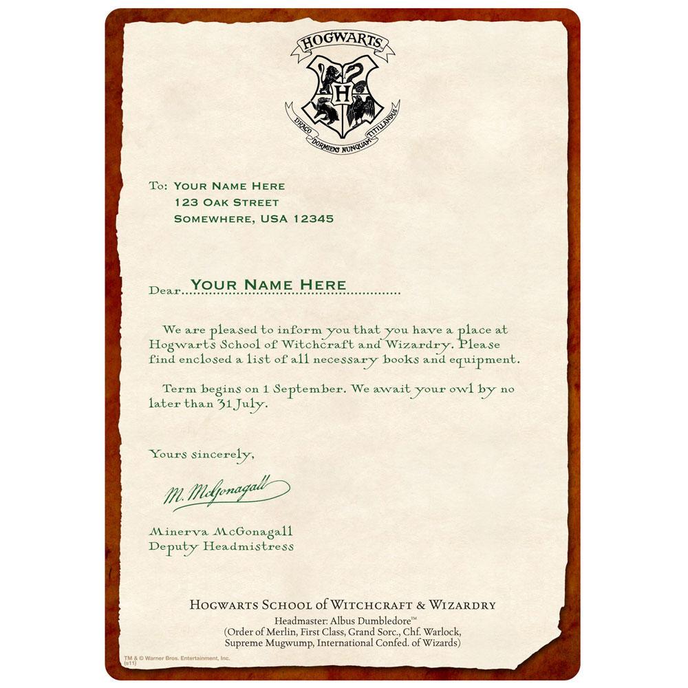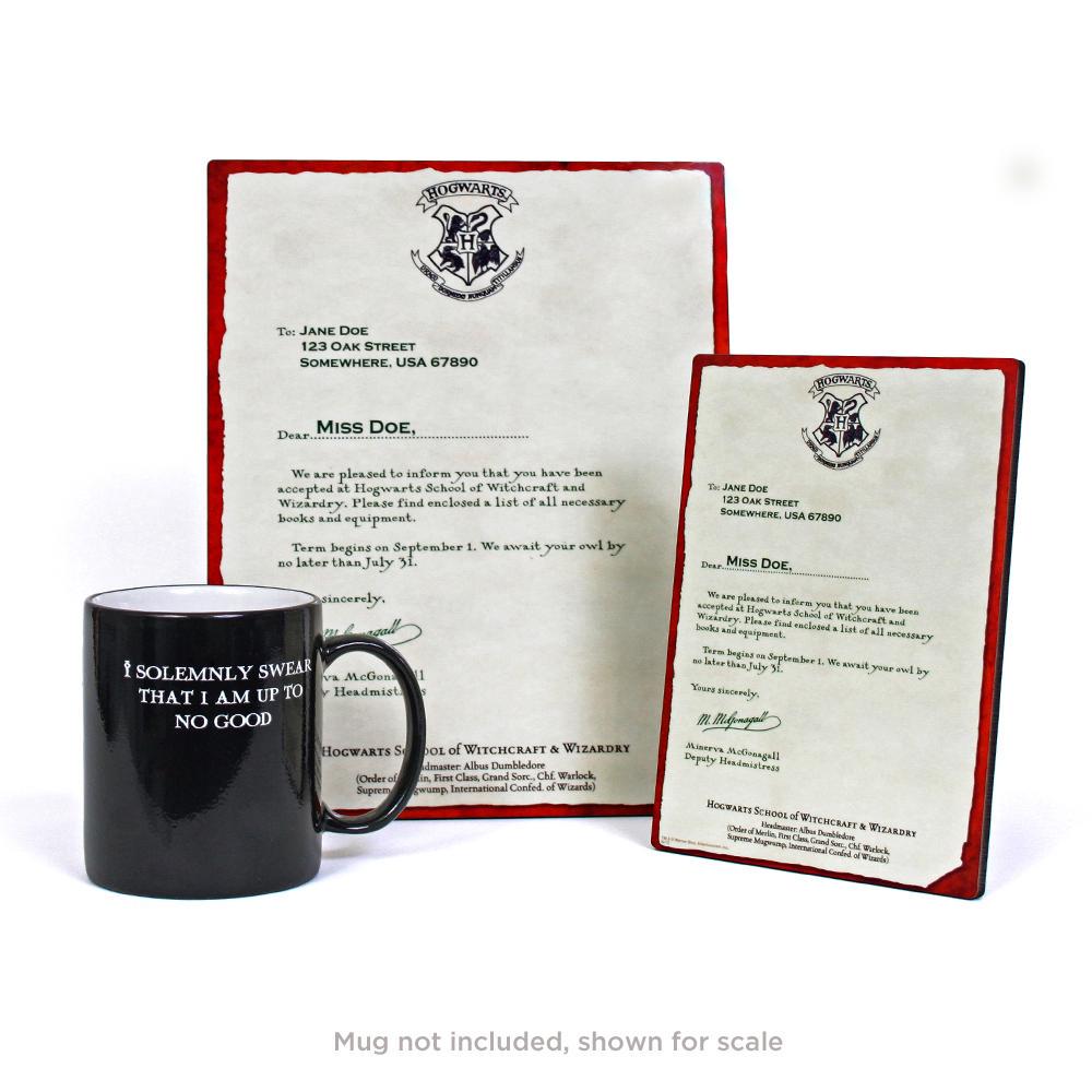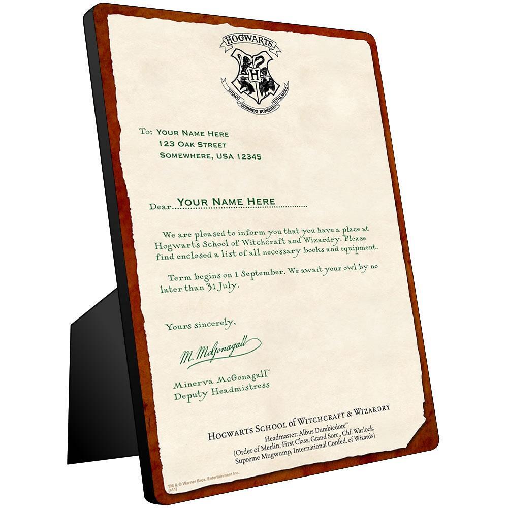A true fan favorite, this personalized Hogwarts acceptance letter panel is a fantastic gift for any Harry Potter fan! This letter is a replica of the one sent to all incoming Hogwarts students, printed with your very own name. Featuring the official Hogwarts crest, it is available in 5" x 7" and 8" x 10" sizes, and with American or British wording. Both versions are signed by Minerva McGonagall, Deputy Headmistress at Hogwarts.