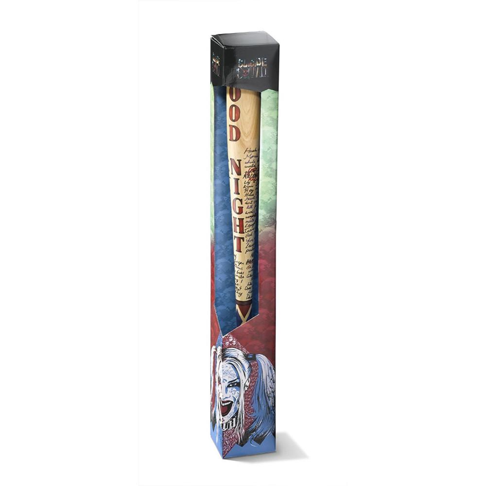 GOOD NIGHT. Harley Quinn always did have a passion for weaponry. Get Harley's bat as seen in the film Suicide Squad. Designed to carefully reflect accuracy, this bat is created from solid wood and will make the perfect addition to your arsenal. It comes with unvarnished ends and measures approximately 31.5" in length.